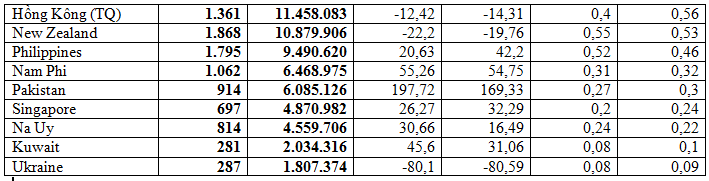 (Tính toán từ số liệu công bố ngày 11/9/2022 của TCHQ)